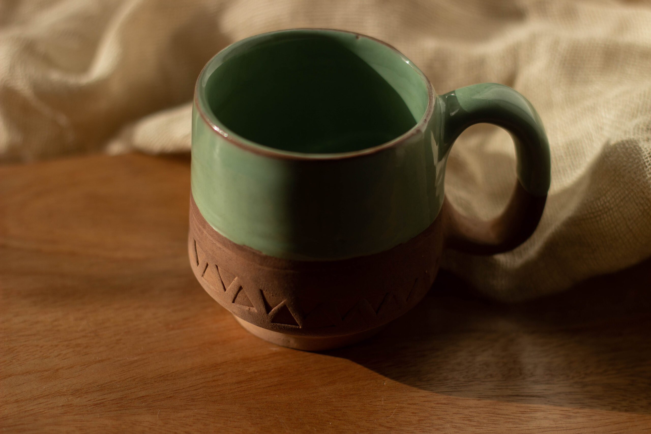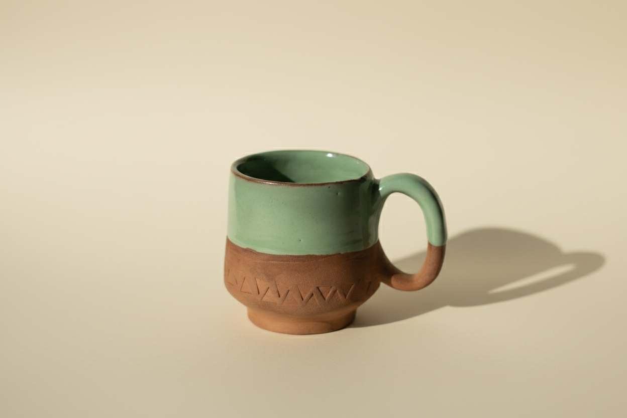 مج خزف لون مينت مع لون الفخار الطبيعي