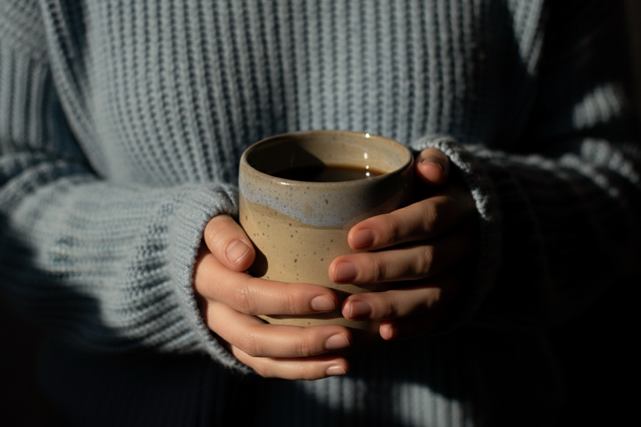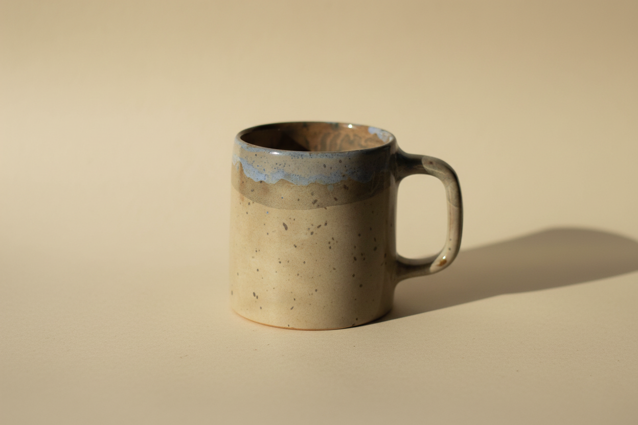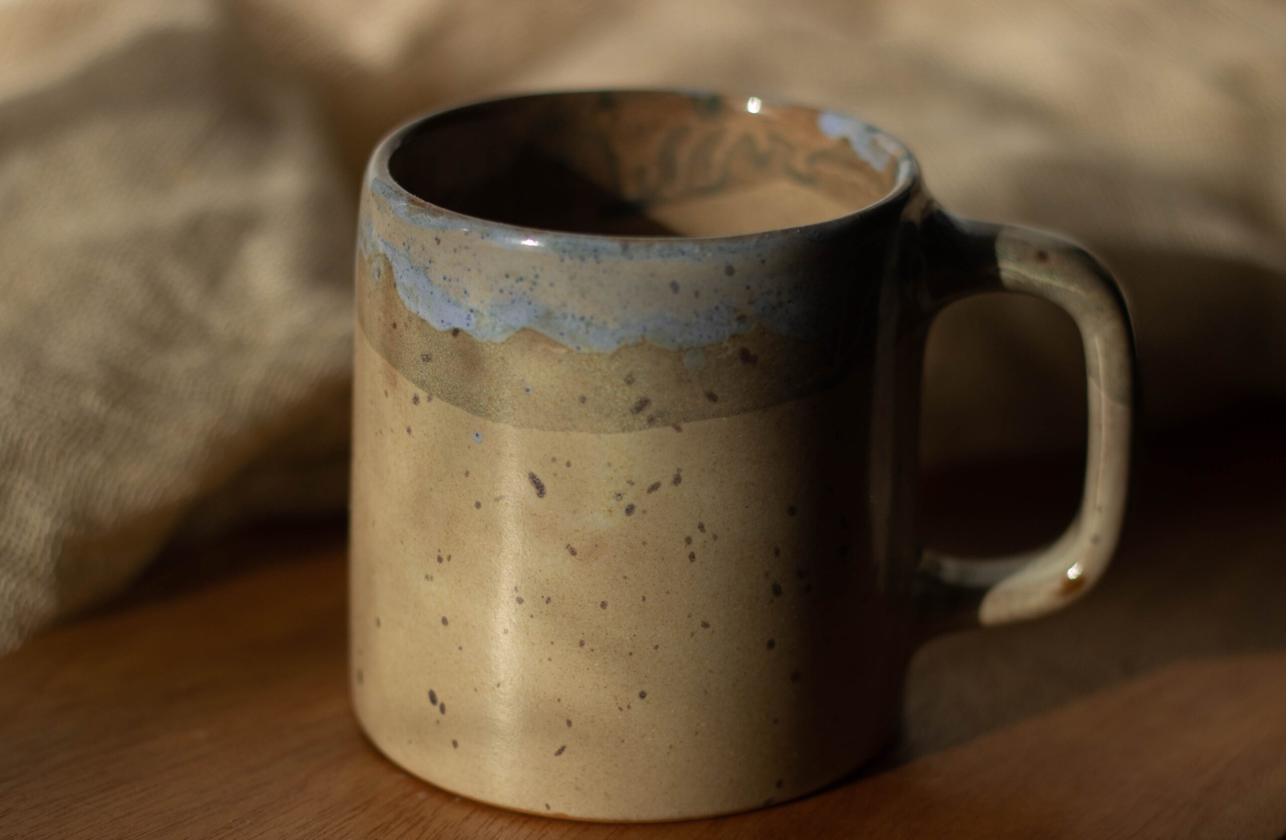Ceramic mug in café-au-lait and light blue colors
