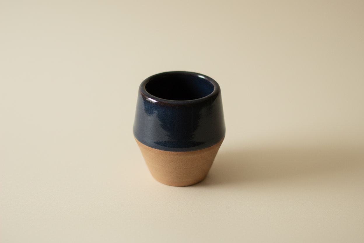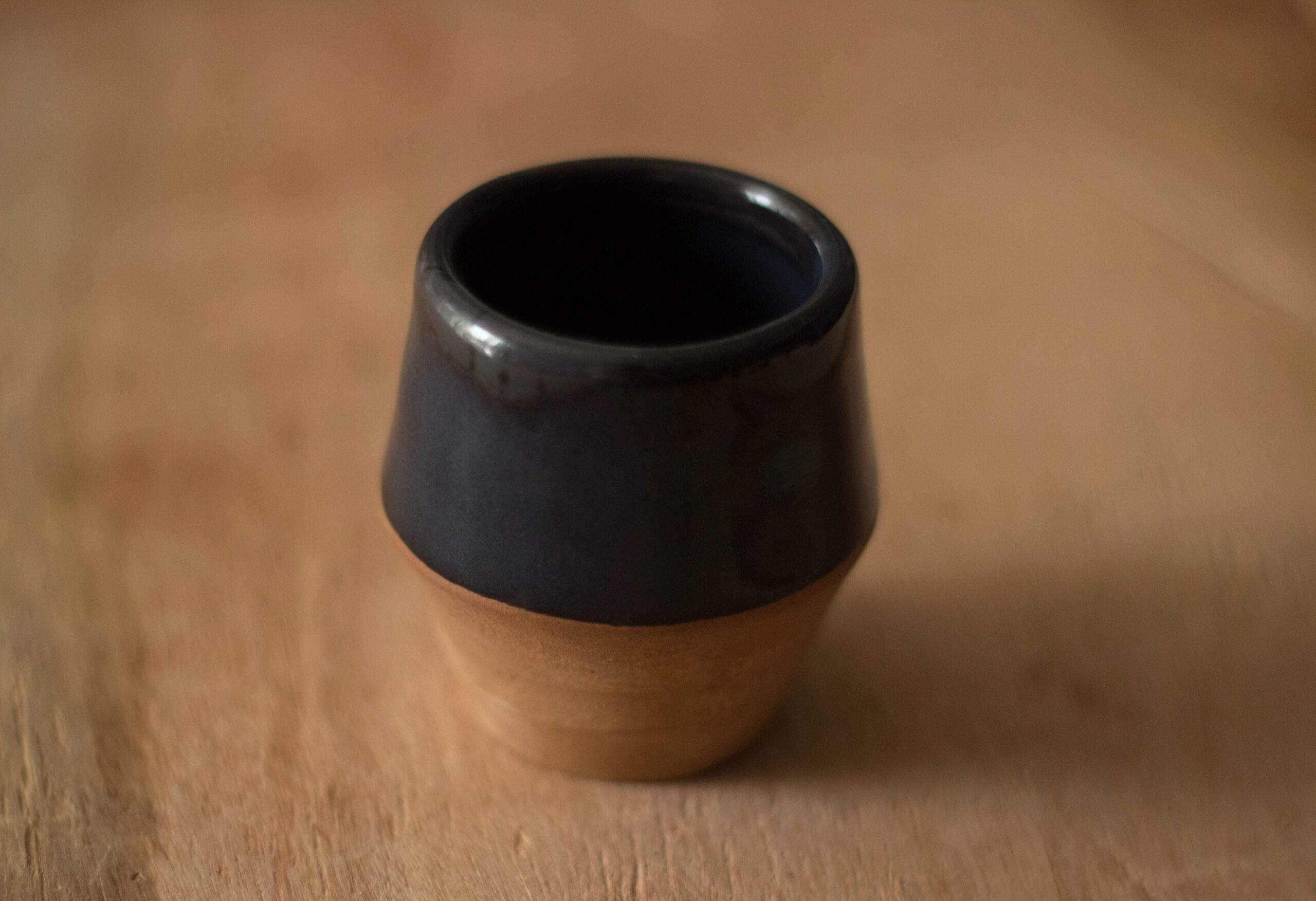 فنجان اسبريسو بدون يد لون أسود مع لون الفخار الطبيعي